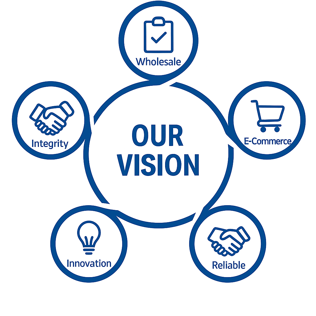 Our vision is to become a trusted global partner in wholesale distribution and cross-border commerce. We connect recognized brands with growing markets across the Americas, promoting fair, transparent, and efficient trade. Through innovation, digital platforms, and strategic partnerships, we work to expand access to quality products while building a future of sustainable growth, integrity, and shared prosperity.